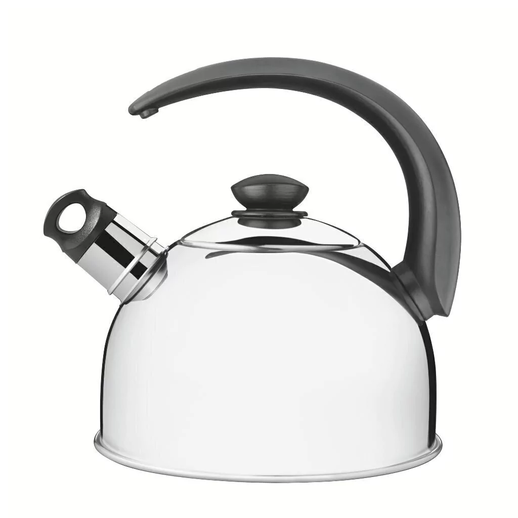 No es suficiente ser bonita, una tetera también debe ofrecer seguridad. Estas características están presentes en la tetera con silbato de acero inoxidable y mango negro de 2,1 l. Posee un silbato que avisa cuando el agua esté hirviendo. Este sistema se acciona por medio del vapor en el momento que el agua comienza a hervir en la caldera. Además está hecha de acero inoxidable y posee un mango de material especial que no deja el calor pasar y una tapa que no permite pérdidas. ¡Elegante y segura, la tetera con silbato debe formar parte de su cocina!